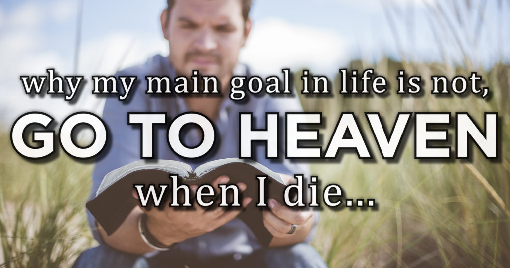 The more I think about that phrase, & especially the context in which it is usually stated, the more I think it often reveals a misunderstanding deep in our hearts. Here are a few thoughts on having heaven as our main goal in life.